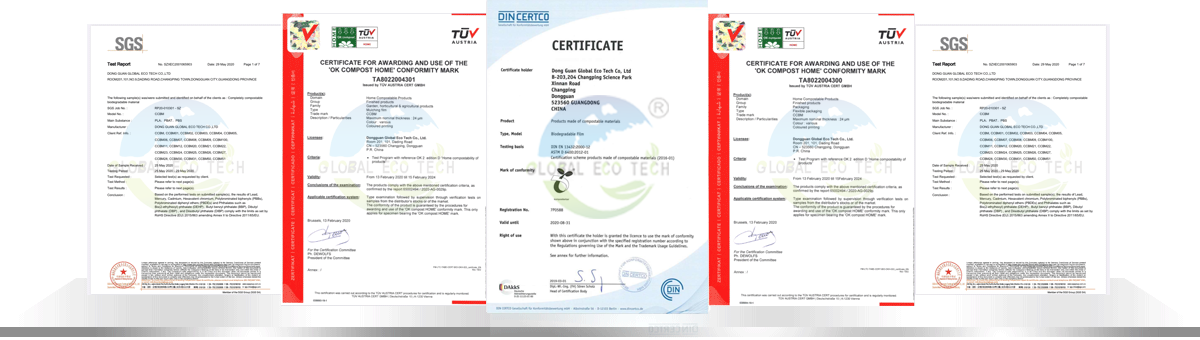 東莞全球環??萍加邢薰究偛课挥跂|莞東部地區、公司致力于全生物降解材料和全生物降解秸稈復合材料的生產研發,專業提供全生物降解 CCBM系列材科,PBAT、PBS、PLA樹脂及全生物降解膜袋、筒膜、餐具覆膜、阻隔膜、復合包裝膜、衛生巾膜等產品。給塑料制造商和消費者提供一站式全品類的解決方案和技術支援。產品已通過德國DIN CERTCO、歐洲TUV公司OK compost HOME認證、國標認證GB/T19277.1-2011:符合歐盟EN13432、美國ASTMD6400、 BPI、澳洲ABA堆肥降解檢測標準,并通過SGS公司檢測的FDA食品接觸安全測試、ROHS有害物質檢測、REACH檢測。我司獲得國家高新技術企業認證、通過了GRS驗廠并且取得了GRS認證,產品熱銷于歐洲、美國、亞洲等30多個國家。